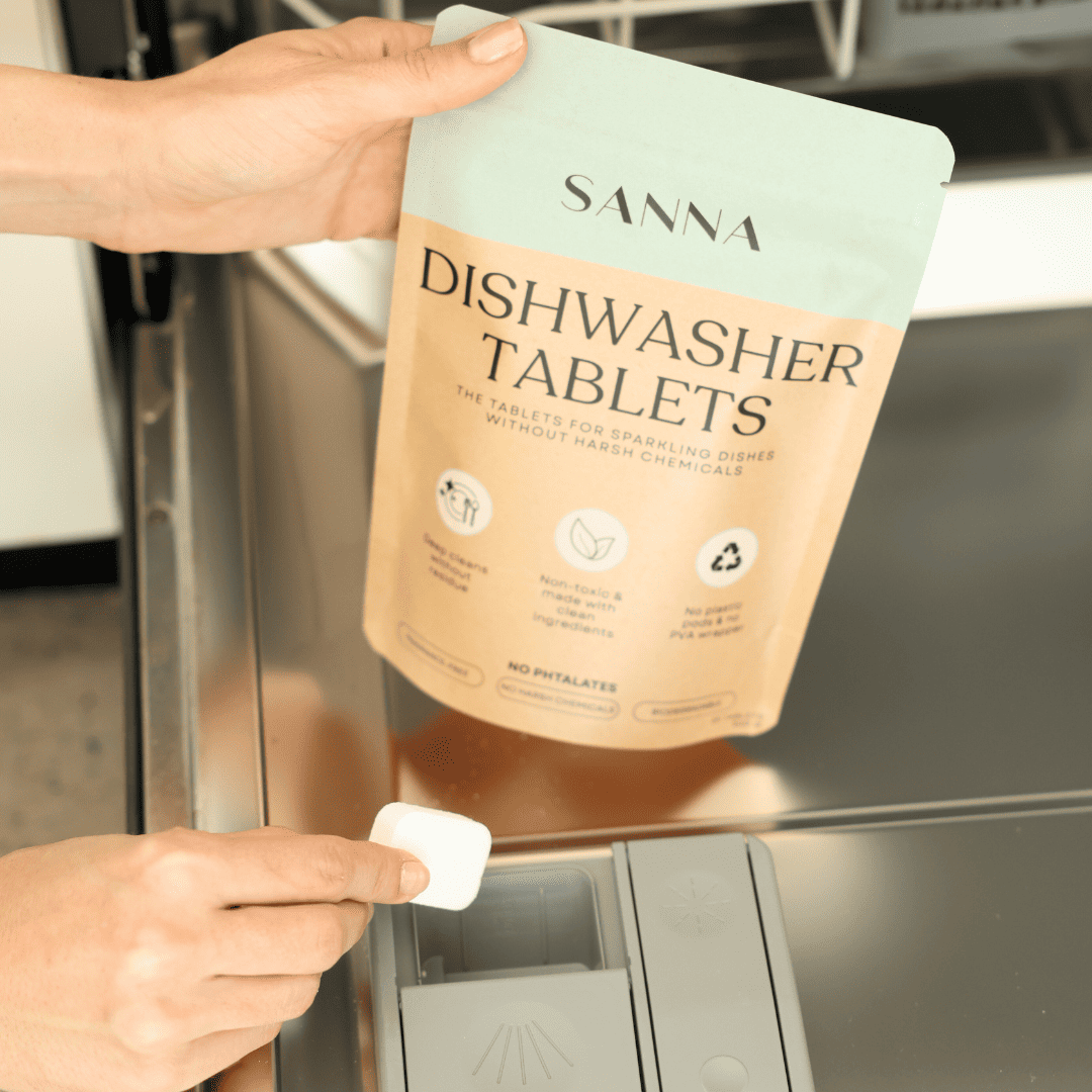 Our Dishwasher Detergent Tablets deliver a sparkling clean without the harsh chemicals, artificial fragrance, or plastic film found in conventional pods.