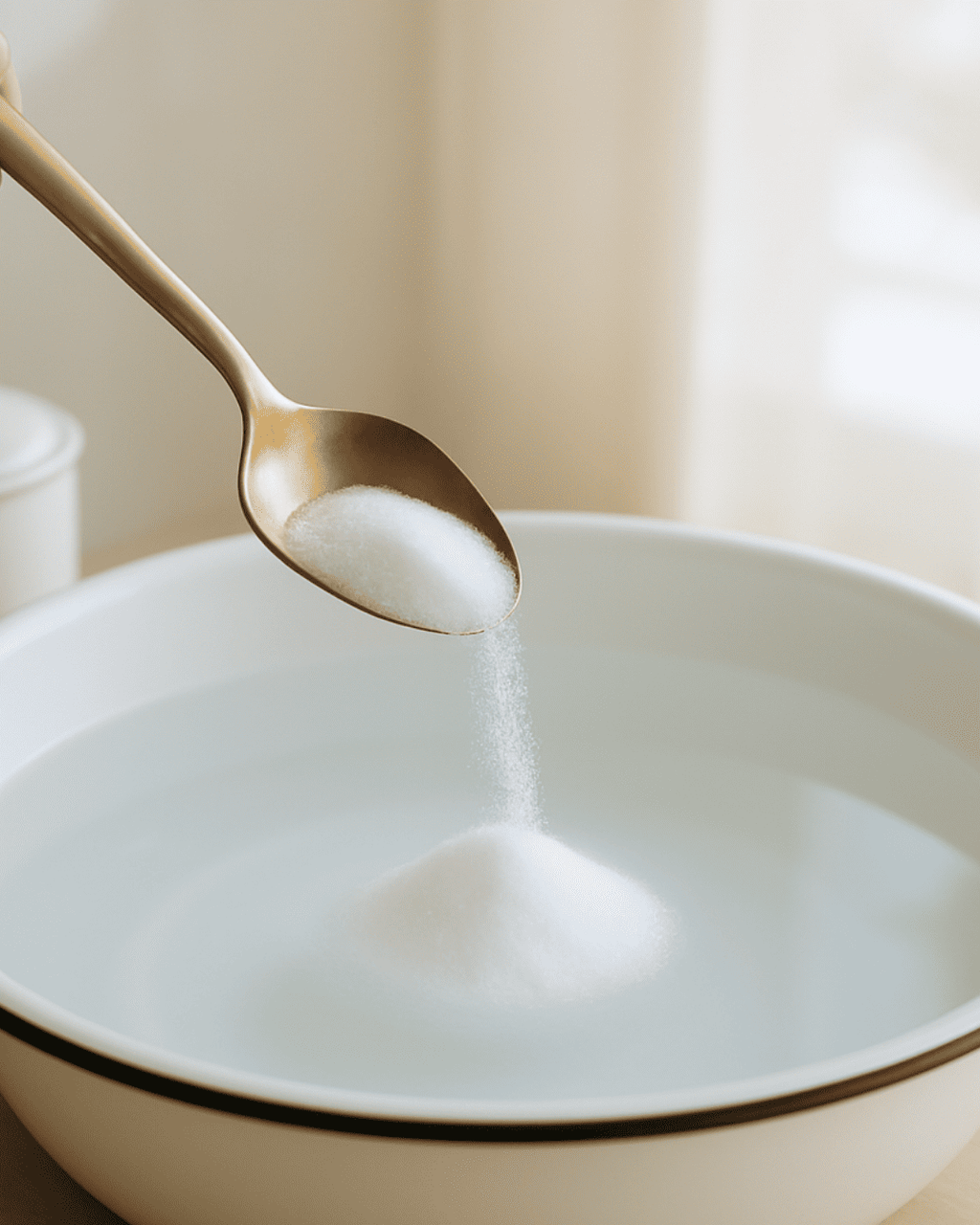 Add 1–2 tablespoons of Oxi Stain Remover into hot water. Let it fully dissolve to activate the oxygen power.